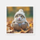 Un mignon hamster est enroulé doucement dans un casquette tricoté et une écharpe, assis dans une coquille de noyer entourée de feuilles d'automne
