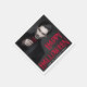 Halloween party napkins featuring a pale, handsome vampire holding a glass of blood and the text “Halloween party” in a red, ornate, distressed font. Customizable name.