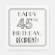Ce design élégant des années 1920/1930, inspiré art déco style d'anniversaire de conception de serviette en papier à thème, comprend le message "HAPPY 45TH BIRTHDAY," et un nom de destinataire modifiable. Le numéro "45TH" a un look géométrique soigné, et il y a aussi une bordure multi-lignes autour du message de voeux d'anniversaire. Des serviettes en papier à thème comme celles-ci pourraient être utilisées lors d’une fête d’anniversaire célébrant le quarante-cinquième anniversaire de quelqu’un. [~Z0000644]