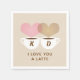 Un design personnalisé "I love you a latte" pour les amateurs de café. Comprend deux tasses à café avec une vapeur en forme de coeur brun et rose clair entrelacée et un arrière - plan couleur crème. Personnalisez le texte personnalisé avec les initiales du prénom du couple.
