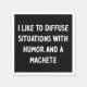Pour l'amoureux du sarcasme en chacun de nous. Découvrez ce design plein d'esprit "I Like to Diffuse Situations with Humour and a Machete" sur les vêtements et les cadeaux.