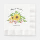 Tournesols couleur Jaune rustique floral mariage papier serviette. Un beau design floral avec un bouquet de tournesols couleur jaune, des feuilles verts, des feuilles et des baies d'automne et vos noms dans une typographie script.