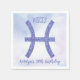 Cette jolie serviette en papier d'anniversaire Pisces violet et lavande présente votre signe astrologique du Zodiac dans une belle étincelle comme les constellations. Customisez ce joli décor avec votre nom en écriture cursive pour quelqu'un qui a un anniversaire fin février ou début mars.