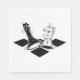 Illustration en noir et blanc d'un chevalier prenant une reine dans un jeu d'échecs. Illustration en noir et blanc pour ceux qui aiment jouer aux échecs et autres jeux de société.