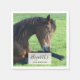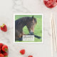 Des serviettes en papier avec une belle photo d'un beau cheval de baie brun posé dans l'herbe, à l'air paisible et contenu.