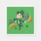 Napkin avec l'illustration d'un joli leprechaun souriant et dansant, il porte un costume vert et un chapeau haut et est entouré de éclaboussures de couleur arc-en-ciel Un design parfait pour célébrer la Saint Patrick, dessiné par Radka2D