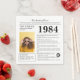 Dites joyeux anniversaire avec ces serviettes de style journal, y compris une collection de faits amusants et des nouvelles du monde de 1984. Soyez créatif et créez un souvenir personnalisé ! Conçu pour ressembler à un journal vintage avec des textes en noir et blanc, il est facilement personnalisé avec une photo de l'invité d'honneur et son nom. Célébrez les années 1980 dans un style unique.