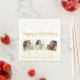 Célébrez un grand anniversaire avec ces serviettes en papier amusant avec 3 photos de la fille/garçon d'anniversaire, 2 titres de texte personnalisés, le tout mis contre un arrière - plan blanc accentué avec des étincelles de confettis de parties scintillant en faux or. Amusant et festif parfait pour toute célébration d'anniversaire.