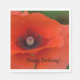 Ces serviettes en papier présentent un beau pavot rouge avec un sentiment d'Anniversaire heureux.