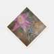 Ces serviettes d'anniversaire en papier comportent un message d'anniversaire avec un colibri qui ramasse du nectar provenant d'une fleur de clématites roses.