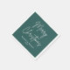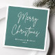 Serviettes de vacances hivernales avec le texte "Joyeux Noël" dans un script de style manuscrit avec votre nom ou autre texte personnalisé ci-dessous. Texte blanc sur arrière - plan vert pin.