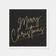 Joyeux texte de Noël en lettres fantaisie chic en fausse feuille d'or est présenté sur les serviettes en papier de vacances noir. Plaques en papier et plus dans notre magasin.