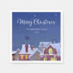 Personnalisez avec votre nom de famille pour créer un design unique de Noël. Répandez la joie de Noël avec ces serviettes mignonnes avec une scène de neige hivernale sur les toits.