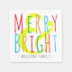 Ces serviettes en papier de vacances ont un design typographique moderne qui se lit "Merry & Bright" en rouge, vert orange, turquoise et vert citron. Au centre se trouve un point vert avec un nom que vous pouvez personnaliser. Conçu par l'artiste mondialement connu Tim Coffey.