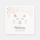 Une serviette en papier mignonne pour la fête d'anniversaire du thème du chat de votre enfant. Il y a le visage d'un chaton avec des bulles de parties scintillant roses. Customisez ce produit en ajoutant le nom et l'âge de votre enfant au bas. Idéal pour une fête d'anniversaire avec design rose et or.