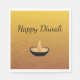 Happy Diwali papier serviette de soirée, avec un design de flamme Diya sur un arrière - plan de parties scintillant d'or. Avec la typographie de script noir lettrage, vous pouvez ajouter vos propres informations. Idéal pour ajouter une touche élégante à votre fête de Diwali.