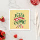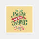 Serviettes en papier avec une jolie illustration. Texte dit Croire à la magie en lettres fantaisistes. Décoré de boules de noël.
