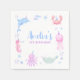 C'est mignon sous la serviette en papier de l'anniversaire de enfant de la mer. Cette carte a de mignons animaux de mer aquarelle parfait pour la fête de piscine en été.
