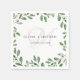 Ces serviettes mariages tendance sont ornées d'un cadre d'abondants feuilles vert aquarelle et de quelques petits fruits sur un arrière - plan blanc propre. Vos noms sont présentés dans le centre, ainsi qu'une version de script subtile et tourbillonnant de votre monogramme.