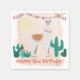 Des serviettes en papier coloré ornées d'un lama cool sur une fiesta et un arrière - plan de cactus. Personnalisez-le avec les détails de votre anniversaire.