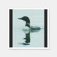 Loon & réflexion sur l'eau bleu pâle. Photographie avec des bordures noires.