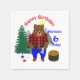 Image mignonne pour un petit garçon avec un thème bûcheron avec un ours mignon en chemise plaid bûcheron contre un arrière - plan de pins et de montagnes. Afficher comme Joyeux Anniversaire avec l'âge mais facile de customiser avec d'autres textes sans frais supplémentaires