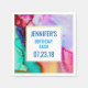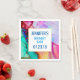 Serviettes en papier d'anniversaire avec un design abstrait artistique sophistiqué. Peinture aquarelle avec les couleurs mélangeant et mélangeant créant un motif marbré fluide. Un cadre blanc avec une fausse bordure en feuille d'or superposée avec votre texte personnalisé écrit à l'intérieur.