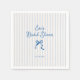 Serviettes pour la fête de mariage fantaisistes et fantasmagoriques avec un beau nœud dessiné à la main dans un style amusant et ludique sur un fond rayé verticalement bleu clair. La police d'écriture manuscrite décontractée capture parfaitement l'excitation et la joie de l'occasion.