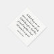 Ajoutez votre écriture inspirante préférée pour créer vos propres serviettes personnalisées en papier de motivation pour un mariage. Conception de texte de devis biblique personnalisable pour un message positif et encourageant pour votre mariage. Cet exemple de verset provient de la Bible anglaise du monde, qui est dans le domaine public. Créez votre propre conception de texte de typographie en customisant la police de style de script de calligraphie en noir. Vous pouvez essayer une police différente face, style, taille ou couleur. Réduisez la taille de la police si vous avez besoin de plus de place pour votre devis.