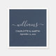 Serviettes en papier bleu marine et argent mariage personnalisées avec une police de caractères moderne. Personnalisez facilement en ligne avec vos détails mariages. Articles assortis disponibles pour compléter ces serviettes en papier mariage bleu marine et argent minimaliste, mais élégantes.
