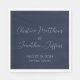 Cet évènement moderne et élégant ou la serviette mariage dispose d'un simple arrière - plan bleu marine avec texte blanc. Les noms du couple sont imprimés dans une police de script. La date et l'emplacement du mariage sont imprimés ci-dessous.
