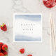 Cette serviette à cocktails mariage chic côtier est à la hauteur de notre collection Ebb Tide, avec des lavages d'aquarelle en bleu périwinkle poussiéreux sur le dessus et le bas, avec votre texte personnalisé en lettres gris doux.