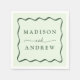 Ajoutez une touche élégante à votre réception de mariage, à votre dîner de répétition, à votre soirée de fiançailles ou à votre wedding shower avec ces serviettes de mariage Modern Green Wavy Frame. Les serviettes mariages rétro affichent les noms du couple en lettres vert gras entourées d'une bordure verte ondulée qui contraste avec un arrière - plan vert clair. Les serviettes mariages à la mode ont été conçues pour s'harmoniser avec notre collection de mariages Modern Wavy Frame.