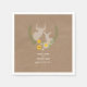 Serviettes en papier illustrant l'illustration de deux cerfs à l'intérieur d'une couronne fleur sauvage sur un arrière - plan en carton brun. Personnalisez le texte. Recherchez les invitations correspondantes et d'autres éléments de coordination chez Jill's Paperie.