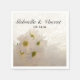 Ajoutez une touche d'élégance à votre fête de fiançailles, douche nuptiale ou réception de mariage avec les jolies serviettes en papier Mariage en dentelle blanche et marguerites. Ces serviettes jetables personnalisées et élégantes sont ornées d'une photo florale d'un bouquet de fleurs de marguerite blanche, d'un voile de mariée blanche et d'un arrière - plan de dentelle complexe.