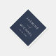 Ajoutez une touche personnalisée à votre réception de mariage, à votre fête de fiançailles ou à votre dîner de répétition avec ces serviettes de mariage personnalisées et modernes. Les serviettes de mariage personnalisées affichent vos noms et votre date de mariage en lettres modernes avec une écriture manuscrite blanche sur un arrière - plan de marine. Les serviettes de mariage navy, simples mais élégantes, sont parfaites pour votre mariage moderne.