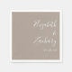Ces serviettes mariages simples et modernes présentent du texte blanc aligné à la marge droite sur un arrière - plan taupe. Ajoutez les noms du couple dans la calligraphie stylisée d'écriture manuscrite.