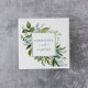Ces serviettes en papier mariage verdoyantes sont parfaites pour une élégante réception de mariage en plein été. Le design botanique présente un agencement luxuriant d'eucalyptus couleur aquarelle peint, de verdure et de feuilles verts avec de subtils ressorts de fleurs roses rousses. Personnalisez les serviettes avec les noms de la mariée et du marié. Ces serviettes peuvent être utilisées pour la réception de mariage, le dîner de répétition, la fête de fiançailles et plus encore!