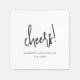Serviette de mariage classique et élégante, avec un agencement simple avec "cheers" dans un script moderne et vos noms et date mariage ci-dessous. La disposition épurée et minimaliste de la serviette en mariage noir et blanc est idéale pour un mariage classique et formel.