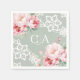 Serviette En Papier Mariage monogramme de fleurs de roses vertes
