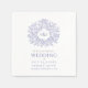 Serviettes de mariage monogramme de conception de feuilles en cercle. Ajoutez vos propres initiales monogrammes, nom et date mariage en bleu violet et gris sur un arrière - plan blanc. Autres couleurs et articles mariages correspondants disponibles. © Dessin et dessin de la feuille d'origine par Sarah Trett pour www.mylittleedenweddings.com sur zazzle.
