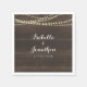 Ajoutez un peu d'élégance à votre mariage ou occasion spéciale avec des serviettes personnalisées avec vos noms et la date spéciale. Le design, un arrière - plan en bois foncé avec des lumières de fée enfilées au-dessus de belles écriture, ferait un grand ajout à votre grange chic événement à thème.