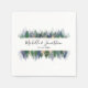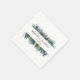 Les serviettes personnalisées mariages représentent un design simple et moderne d'aquarelle avec des pins verts, lavande, violet et or. Elles comportent des noms et des dates.