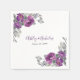 Serviettes de mariage botanique personnalisées avec élégant script manuscrit et bouquets floraux violets. Le design présente les noms des mariés et des mariés et la date mariage avec mauve violet et magenta fleurs roses et vert gris verdure. Parcourez ma boutique - collection de fleurs violettes peluches - pour trouver des articles correspondants.