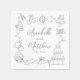 Serviettes Mariages Quirky Tirées À La Main Personnalisées. Cette serviette de cocktail mariage amusante et ludique présente des illustrations de doodles originales tout autour du design, dont une tour de champagne, un gâteau mariage, une boule de disco, des coeurs, des cloches mariages, des anneaux, des caméras, des fleurs, etc. Les noms et la date du marié et du mariage sont élégamment présentés sous cette oeuvre d'art fantaisiste dans un mélange de script manuscrit et de polices simples, le tout en gris doux pour un look unique et élégant. Entièrement personnalisable, cette conception vous permet d'ajuster le texte et la mise en page en fonction de votre thème mariage. Idéales pour les réceptions de mariage, les dîners de répétition ou les douches nuptiales, ces serviettes ajoutent une touche amusante et personnelle à votre célébration.
