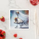Un personnage fantaisiste vêtu d'une robe nuptiale et de baskets est orné d'un bouquet coloré et d'un voile orné pour la douche nuptiale.