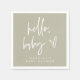 Cette serviette de baby shower a une police manuscrite bohème et un design minimaliste moderne avec une combinaison de couleur verte et blanche sage et les mots, "bonjour, bébé". Cette serviette en papier est l'ajout parfait à votre événement de baby shower désert, automne ou bohème sans rapport entre les sexes.