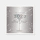 Célébrez votre fête de la Saint-Sylvestre avec ces élégantes serviettes en papier brillant argent métallique, avec typographie de parties scintillant et verre martini.