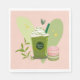 Design rose et vert des gâteries mignonnes du thé et des macarons.