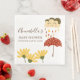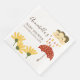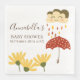 Cette charmant serviette de baby shower personnalisée présente un joli thème illustré dans des couleurs chaudes et douillettes, d'automne. Un joli petit nuage de pluie est représenté en haut, il pleut au-dessus d'un parapluie à points rouges et jaunes de polka. Les gouttes de pluie du nuage de pluie sont représentées dans les tons jaune, marron, orange et rouge marron. Un petit jardin de marguerites jaunes est représenté le long du fond. Le thème est parfait pour un baby shower d'automne ou un baby shower neutre pour les hommes et les femmes en toute saison.